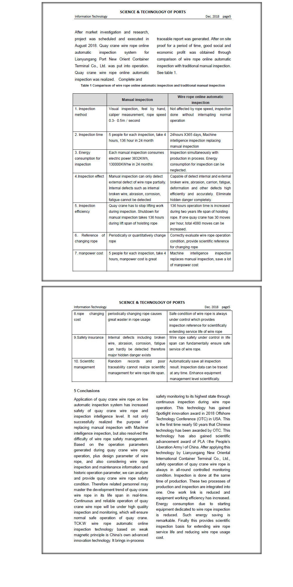 Editor's note: TCK.W has developed a weak magnetic rope detection technology that can real-time monitor the status of steel ropes 24 hours a day, 365 days a year, and locate, classify, and quantitatively identify various internal and external defects. Currently, more than 2,500 clients in 42 countries worldwide are using this technology. These clients have published papers on the safety and economic benefits brought about by this new technology in various academic journals. Here is a compilation of some of these papers for experts and scholars to explore and study in depth.。